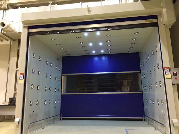快速門是由開門傳感器提供觸發(fā)信號給控制系統(tǒng),控制系統(tǒng)根據(jù)快速卷門的當前位置發(fā)出指令給變頻器,啟動驅動電機使門簾快速上升,車輛行人通過后門簾自動下降,關閉通道,直到下一個開門信號再次打開。快速卷門升降速度非??欤荒芟皲撝凭黹l門一樣直接啟動停止,一般需要變頻器來控制電機的車速。上升時越快越好,快到位時(20cm左右)需要有一個減速緩沖停止過程,以防止撞擊軌道,防止夾人,降低噪音,這也是衡量快速卷門性能好壞的一個標準。