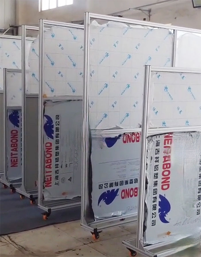 移動(dòng)式:在固定式的基礎(chǔ)上,底部600mm寬的橫梁上安裝4個(gè)萬(wàn)向滑輪,使其整個(gè)防護(hù)屏可以移動(dòng)。
